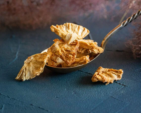 Getrocknete Ananas enthalten Kalzium, Magnesium, Mangan, Eisen, Ballaststoffe und die Vitamine C, A und B. Sie sind reich an Antioxidantien und Beta-Carotin.